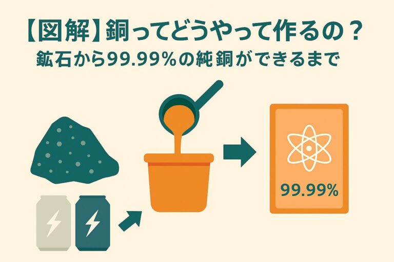 銅ってどうやって作るの?鉱石から99.99%の純銅ができるまで